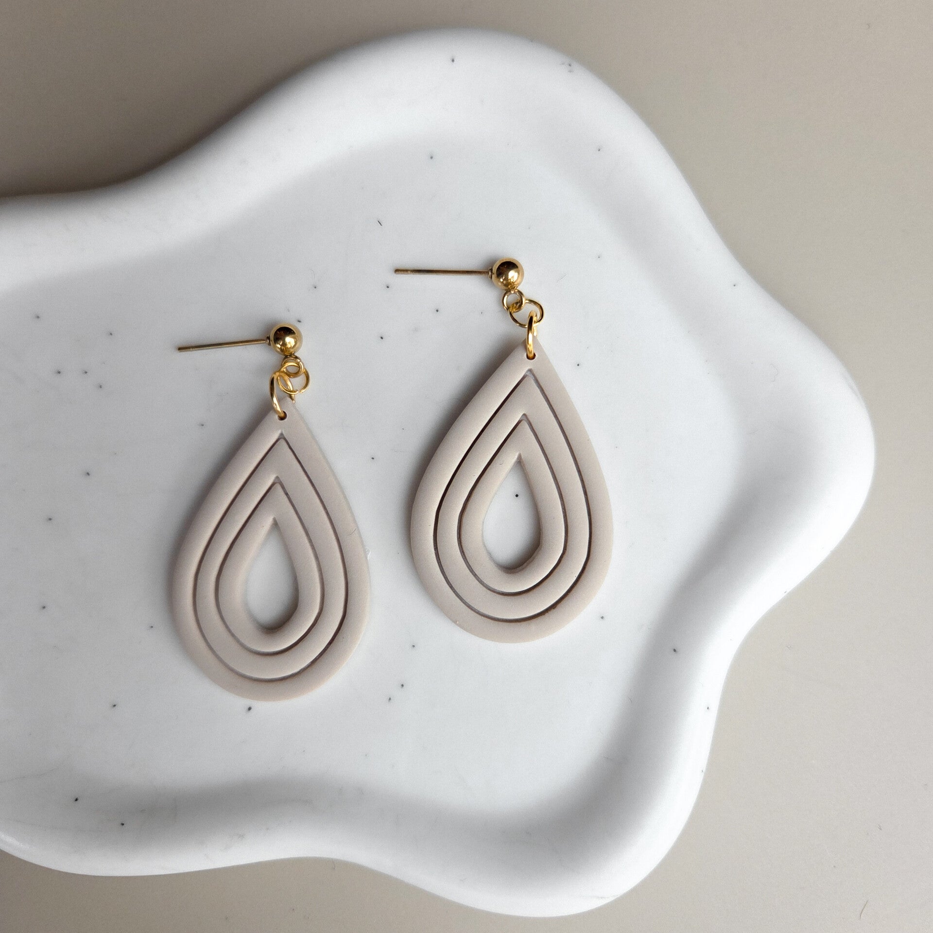 Inge - druppelvormige oorbellen beige