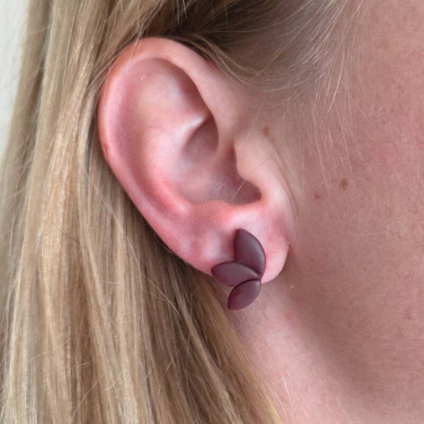 Deze bladvormige knopjesoorbellen zijn perfect voor wie van kleine oorbellen houdt, maar wel graag iets bijzonders draagt. De knopjes komen in vier kleuren: bordeauxrood, donkergroen, beige en bruin.