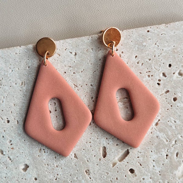 Ruitvormige blush oorbellen